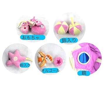 ぶら下げるおもちゃは 音がするものがいっぱい。フレームを蹴ればいろんな音がして 赤ちゃんは飽きることなく遊べますし、遊び疲れたらそのまま寝てもOK!